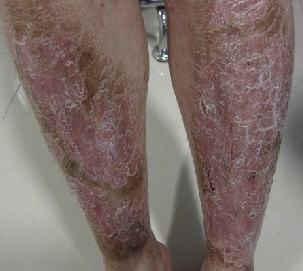 查体:下肢寻常型牛皮癣 由内分泌障碍和系统性免疫功能紊乱诱发